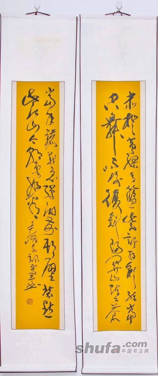 贺军书两条屏。毛泽东《菩萨蛮·大柏地》