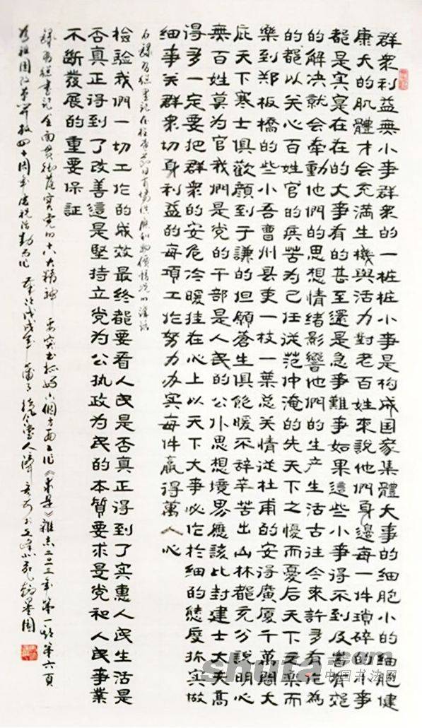 【隶书中堂-习语录-群众利益无小事】