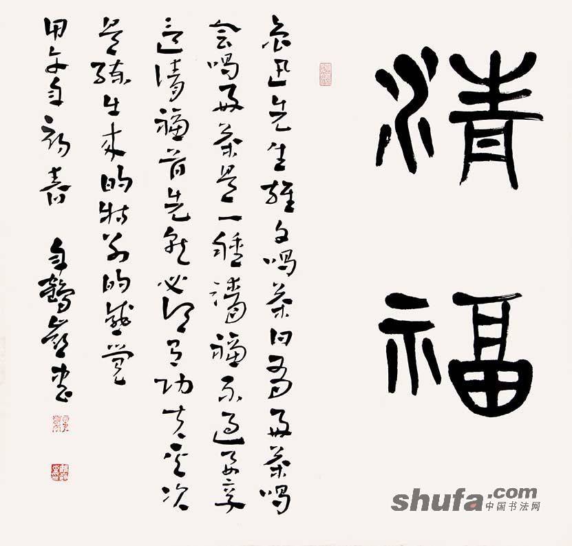 释文:鲁迅先生杂文喝茶曰 ,有好茶喝会喝好吃茶是一种清福,不过要享这清福首先就必须有功夫,其次是练出来 的特别的感觉。甲午年初春,年鹤岭书