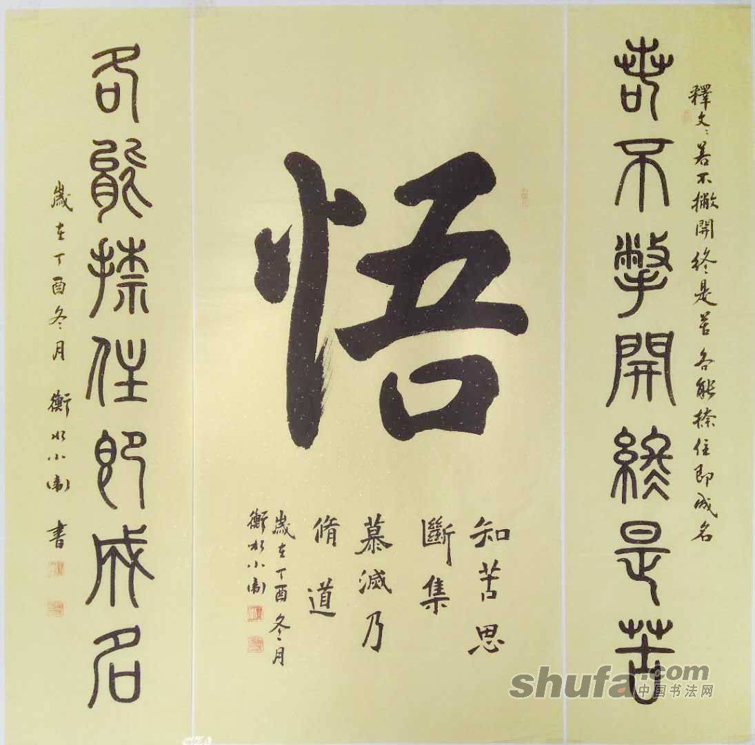 篆书对联释文: 若不撇开终是苦,各能捺住即成名。 有需要寇老师作品的朋友,请拨打【寇小卫书法工作室】助理寇天成(女士)电话: 15531811635(同微信)、 15631809143(同微信)。 欢迎全国各地的朋友到【寇小卫书法工作室】(衡水站)莅临做客、指导与洽谈业务。