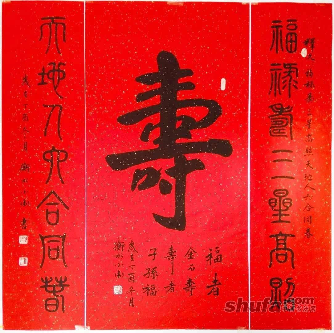 篆书对联释文: 福禄寿三星高照,天地人六-合同春。 有需要寇老师作品的朋友,请拨打【寇小卫书法工作室】助理寇天成(女士)电话: 15531811635(同微信)、 15631809143(同微信)。 欢迎全国各地的朋友到【寇小卫书法工作室】(衡水站)莅临做客、指导与洽谈业务。