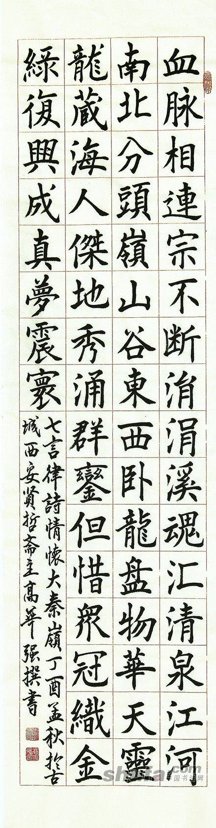 高华强楷书四尺对开条幅自撰诗七律“情怀大秦岭”138X34cm