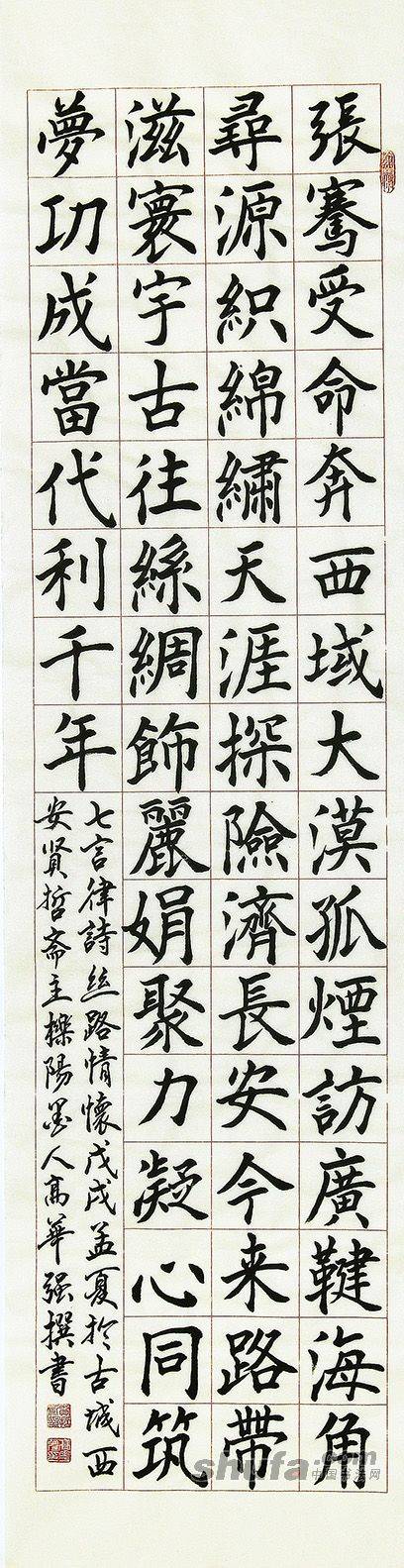 高华强楷书四尺对开条幅自撰诗七律“丝路情怀”138X34cm