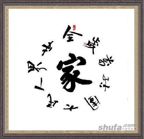 “全世界人民大团结”是世界各族人民成为一家的终极目标。书法创新通过选择恰当的书风笔画和布局形式,充分表现“家——全世界人民大团结万岁”这一主旨。