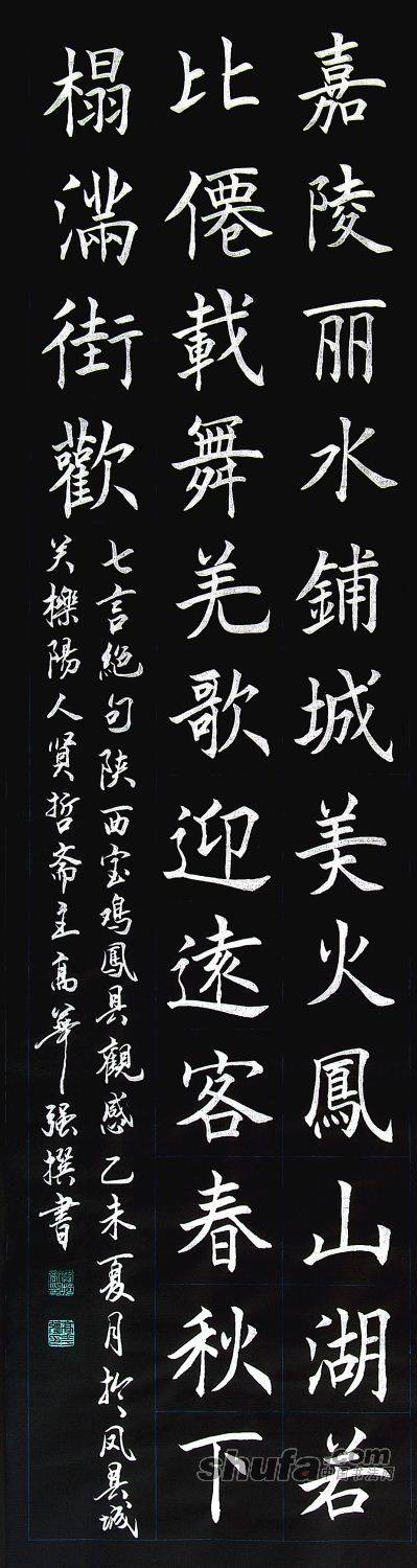 高华强楷书四尺对开条幅七绝“陕西宝鸡凤县观感”138x34cm
