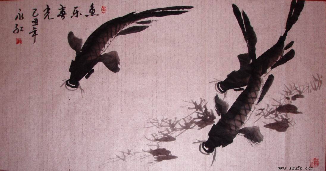 张永红,1958年生,高新区西尹村人。幼年失诂,少年缀学,家境贫寒,自幼承担起生活的重担。青年时代,凭着自己对艺术的追求和热爱,良好的艺术天赋,在艰难的环境中磨砺着意志和不懈地努力。 今日,永红先生的国画作品荣获山东省农民书画大赛金奖。这一迟来的荣誉,即使对他多年艺术生涯的回报,也是对他书画艺术品位的准备定位,是十分可喜的。 张永红先生获奖作品《鱼》,为六条墨写的鱼。六条鲤鱼跃然纸上,鳍动尾摆,活灵活现。一幅作品只见有鱼,背景不沾半点墨色。恽寿平《南田话跋》谓:“画以简贵为尚,简之入微,则洗尽尘滓,独存孤迥。”画面笔墨厚重老辣,近乎狂野。张永红先生画鱼,用笔极简,画意生动,这是他细心揣摸,观察的结果,也是多年求学深造,其品格,学养,功力提高的结果。我有幸观其画鱼,只见他如渔夫张网,如武士拈枪,凝神聚气,一笔落纸,快如疾风,一气呵成。不管三条九条,悠然间,跃然纸上。 张永生先生没有经过较系统的院校学习,为了摆脱作品格调不高,流于甜熟的缺憾,二00六年,又赴天津,进天津美院进修一年。