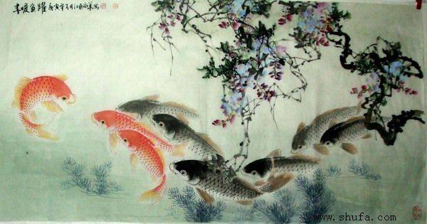 拙作,请欣赏!四尺整张9条鱼出售。联系QQ:865698925电话号码:0555-6251636