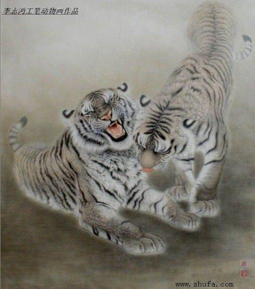 工笔画.双虎