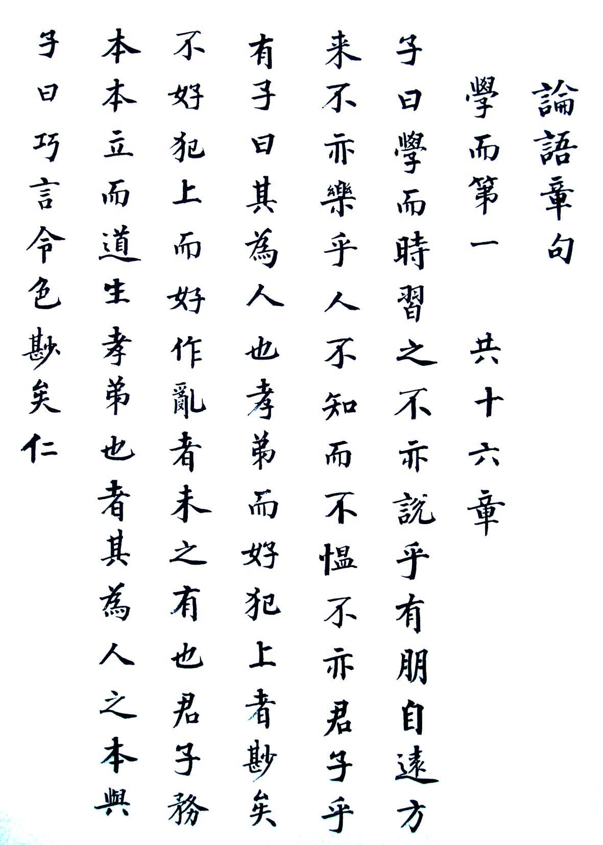 论语第一章楷书作品,作品字迹清雅,笔力遒劲.