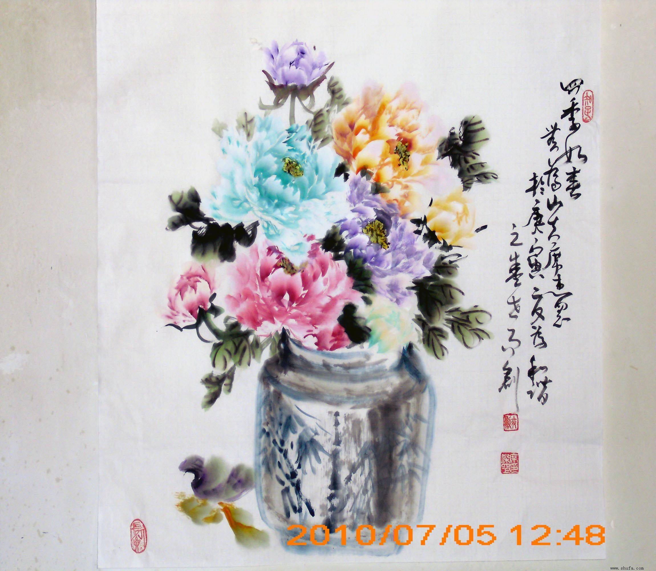 国画四尺牡丹斗方