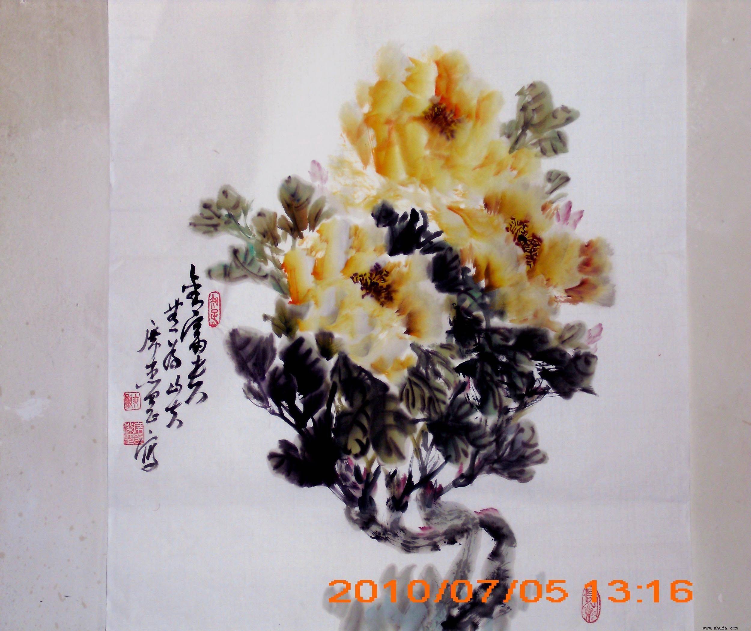 国画四尺牡丹斗方