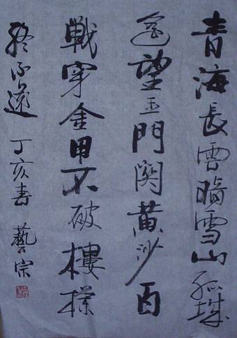 青海长云暗雪山,孤城遥望玉门关。黄沙百战穿金甲,不破楼栏终不还。 丁亥春 艺宗