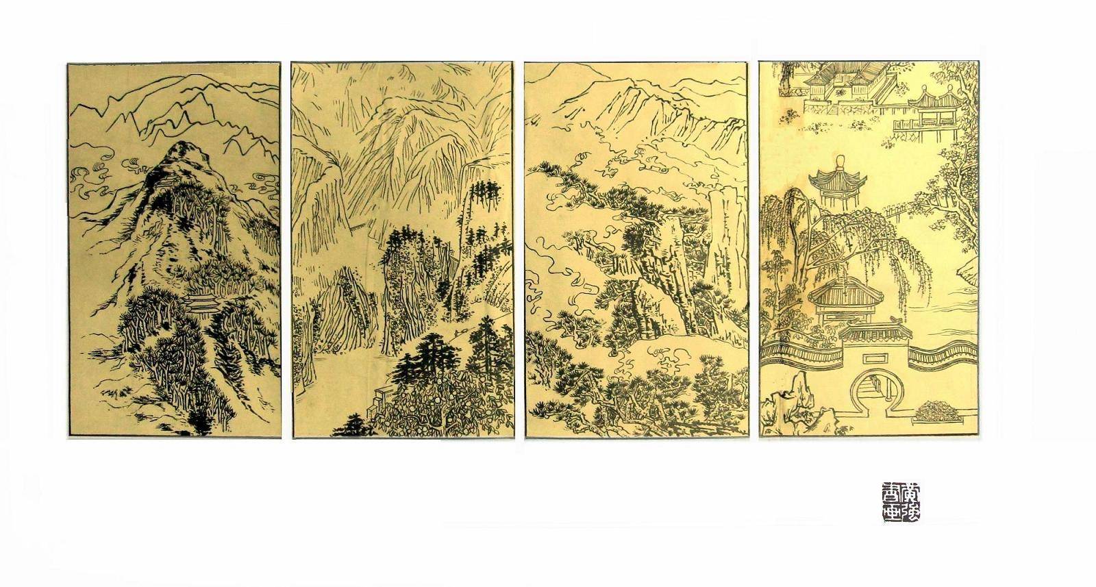 黄强作品:中国画四条屏 东湖春色 秦岭云涛 峡谷晓霭 太白积雪 拙作,请欣赏!