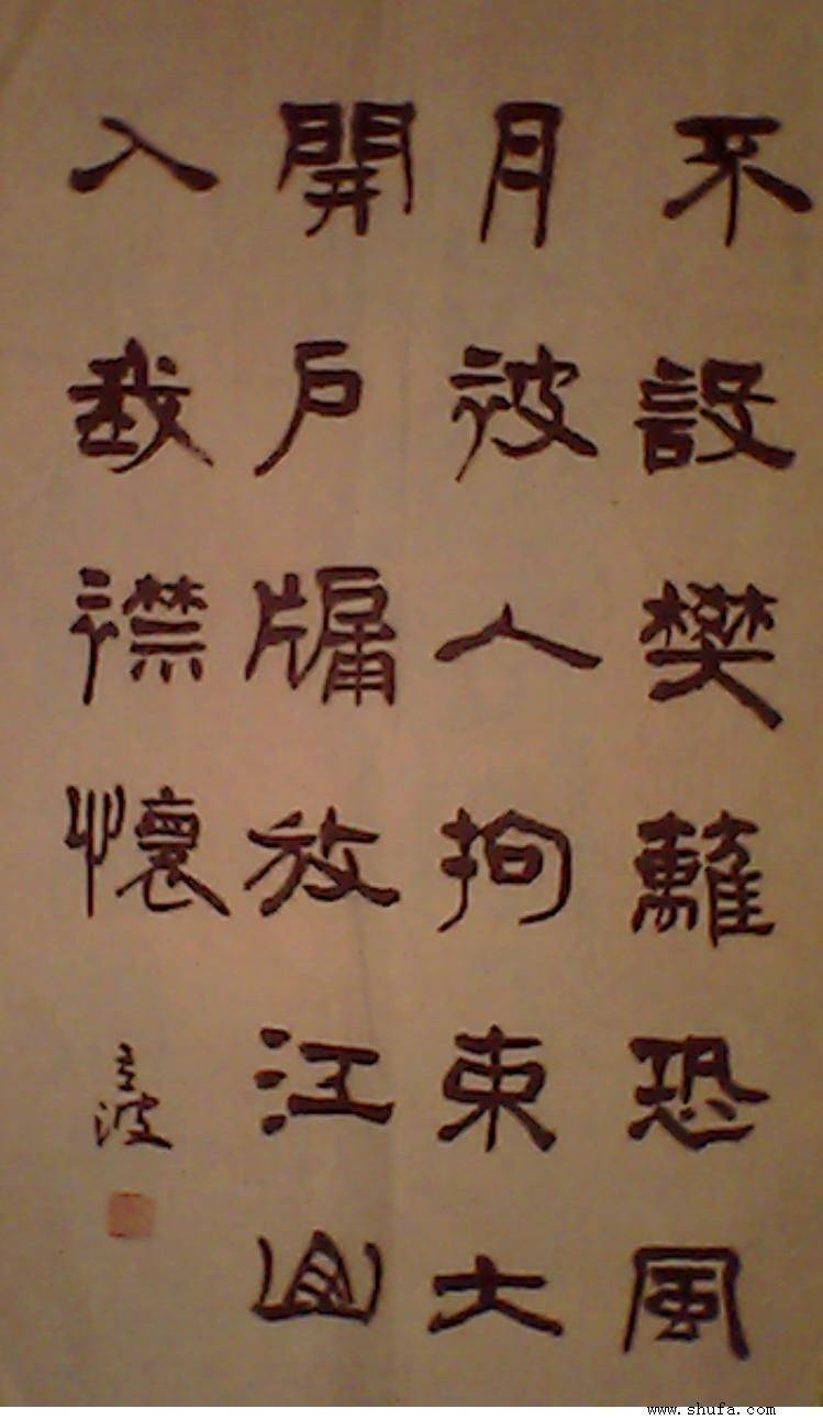 赵立波先生作品是一件以颜字为基础的作品,该作章法完整,点画厚重饱满,转折顿挫多变,结体宽博端正,整体上显得大气磅礴,雄强刚毅,仪态雍容,庄严肃穆。当今书坛能将楷书写出新意的人很少,而能将唐楷写出新意的就更少。但从立波先生的楷书来看,里面有些生拙的情趣,因为唐楷已经通过技法、笔法将结字写到美之极致,想再从此突破很难。试想,如果我们将唐楷往“丑