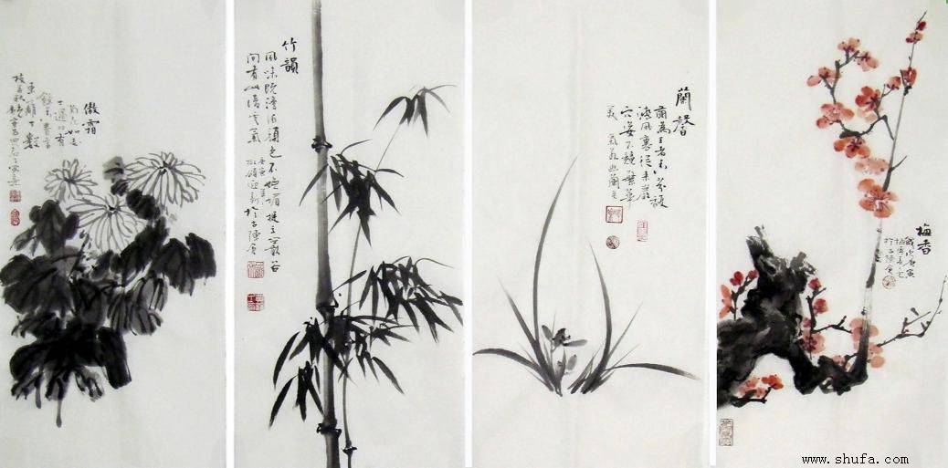 黄强祝愿书画朋友们新年快乐!!(梅兰竹菊)