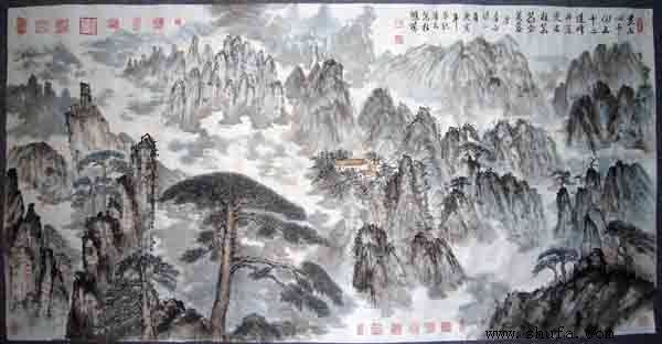 浅降山水国画