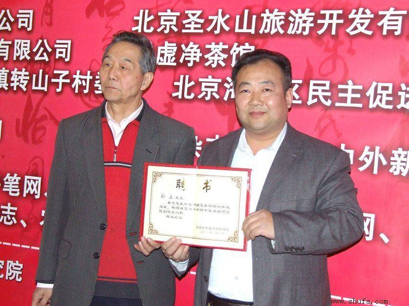 李翀给孙立颁发聘书聘请孙立为中关村书画研究院副院长