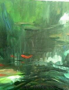 油画风景 池塘