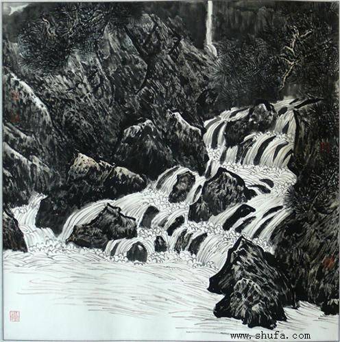 中国画《松溪图》