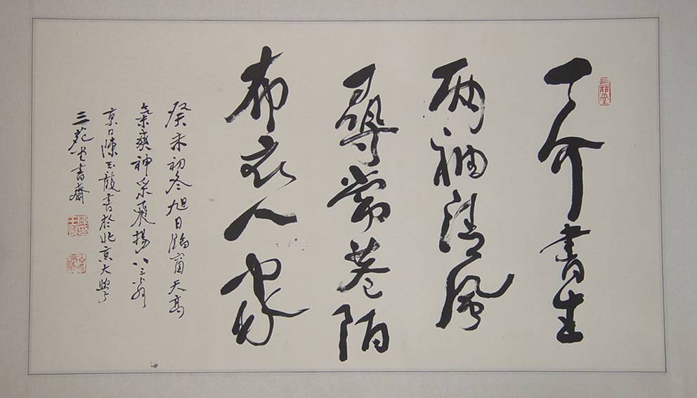 释文: 一介书生 两袖清风 寻常巷陌 布衣人家 癸未初冬旭日临窗天高气爽神采飞扬八三翁京口陈玉龙书于北京大学三苑堂书斋 07定价:40000元