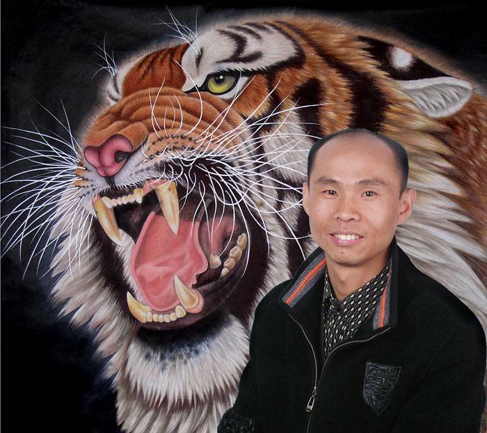 王中民号狮虎圆主人,原籍河南扶沟县,现定居郑州,自幼艰苦习画,勤学人物、山水,后对生宣纸画工笔狮子、老虎、藏獒情有独钟,专研于狮子、老虎、藏獒技法与技巧,常常夜不能寐。在艺术上讲究中西合璧,传统与现代相结合,且多有创新。自画狮、虎、藏獒以来,取材自然,以狮、虎、藏獒为题材,意境深远、笔墨流畅、画面气韵生动,具有超强时代感,画如其人,其画风严谨,用色浑厚,意境深远,在画界享有“中华狮虎王”和“中国画藏獒第一人”之美誉。先后从师于中国美术家协会副主席吴长江先生,博士生导师杜滋岭,著名画家赵华胜,中国美术家协会主联部主任梅启林先生,其作品水平更上一层楼,特别是国画藏獒被画界所公认,其作品在省美术家协会举办画展,多次获得最高奖。九七香港回归书画展获一等奖;澳门回归书画展获金奖;1999年中国地名杯书画大赛获金奖,作品多次被省博物馆、国内知名企业和国际友人收藏,作品多次发表各种报刊、杂志。