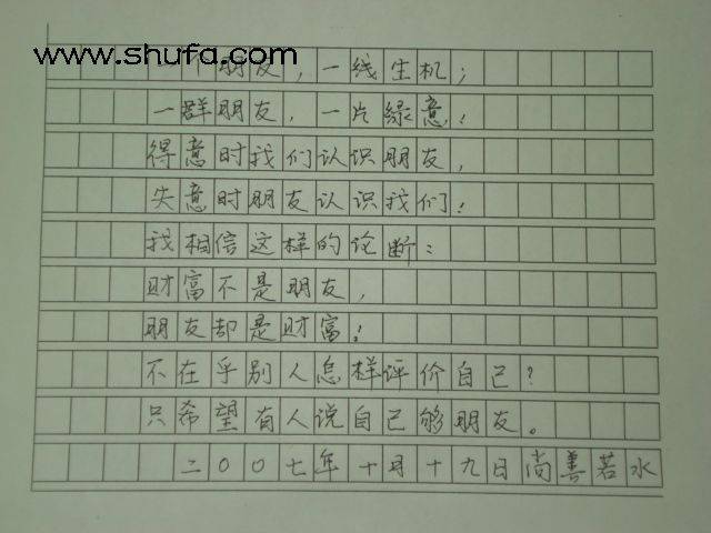 当我终于鼓足勇气拿出早已准备好的笔和纸之后,急切的心迫使下手,我却又不得不一笔一画写下去.......