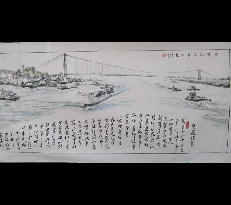 涂棣喜国画长卷《阳逻兴港图》