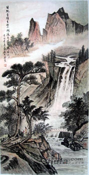 朱德其:山水画中堂《日照香炉生紫烟》 作于2011年4月