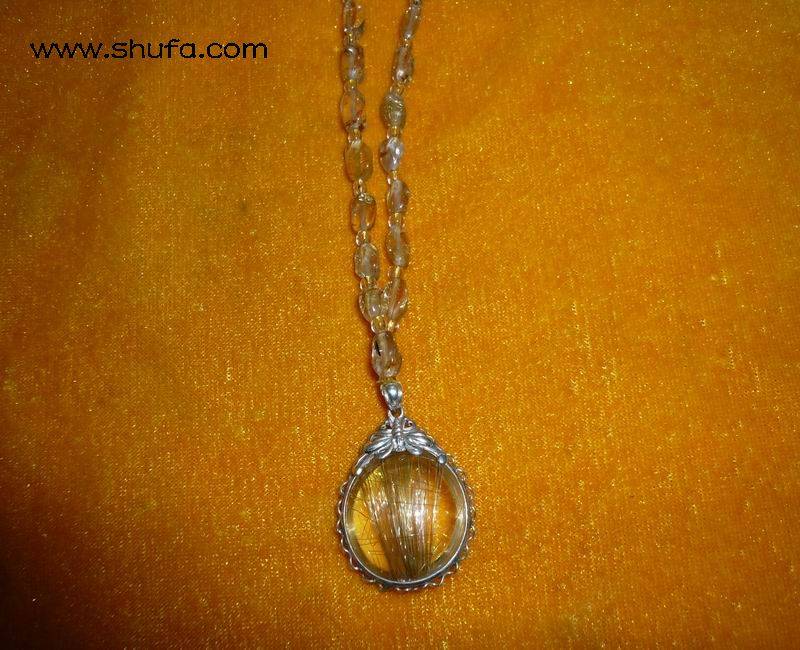 天然水晶项链,里面带金发丝