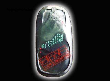 金晕石艺术砚-佛在心中,780元 简介:歙砚是我国四大名砚之一.它以石质坚潤.发墨.雕琢精细雅致名传海内外. 产地:歙砚主要产于黄山市歙县及江西.歙砚石品名繁多,按天然文理分:眉文,罗文,金晕,金星,银星,金花,鱼子,玉带.紫云.青绿晕等. 用途:歙砚不仅用于书写绘画,还可陈设案头用来艺术欣赏.还可作为高雅珍贵的礼品.从唐代末年开始,就成为上献帝王的贡品.是文人墨客最为珍视的四大名砚之一. 说明:此砚是一个金晕歙砚,创意新颖,雕刻十分精良,配以木砚盒,是一鉴赏及收藏精品。