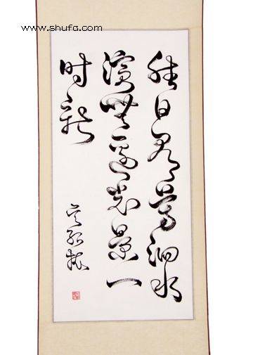 圆转飞动、变幻无穷、运笔如骤雨旋风、龙飞凤舞、大气磅礴、在章法布白上,纵横驰骋、神采飞动、一挥而就、如醉如狂、奇幻百出、三字五字相连,一行相连、气吞山河。把张芝、张旭、怀素、王羲之、王献之的笔法巧妙的融为一体。浑然天成、几篇狂草的章法实际上是把一幅字当做一个字来写,是线的一流构筑,是线的交响乐章,这种出神入化的书法艺术精品,震撼人心,绍振的确创造了一个奇迹。详细介绍请查询书法家网址:www.wushikuangcao.com