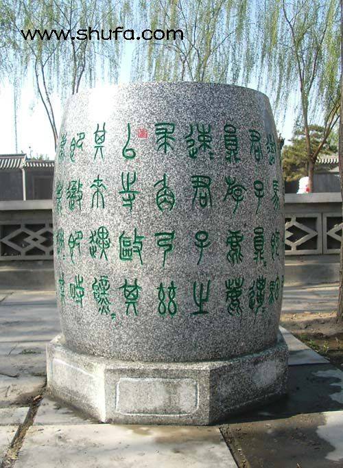 朱志齐临写石鼓文,并做成石鼓(白洋淀景区)