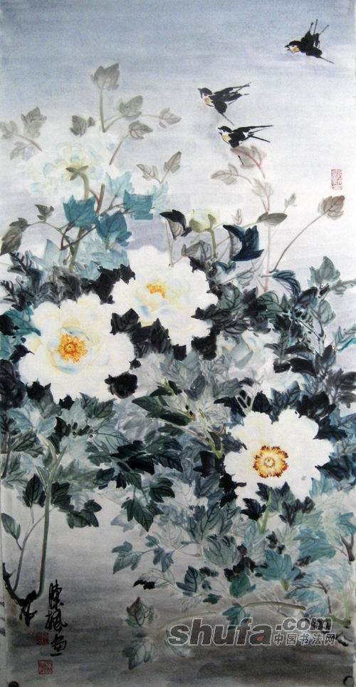 陈枫,原名陈志强,1976年生,上海美术学院毕业,河南南阳人。现为中国现代花鸟研究会创作室副主任,河南省政协书画院高级画师,大河画院秘书长等。 陈枫擅长中国花鸟画,以其独具个性风格的现代彩墨写意牡丹画步入画坛,成为近年来颇受学术界关注的实力派青年画家,多次在海内外举办个人画展及联展,在参加全国性重要书画大展赛中百余次获得大奖。其艺术成就被《中华书画英才》杂志、《当代书画家》杂志、《国画家》报、《中原书画报》、中央电视台等近百家媒体专题报道