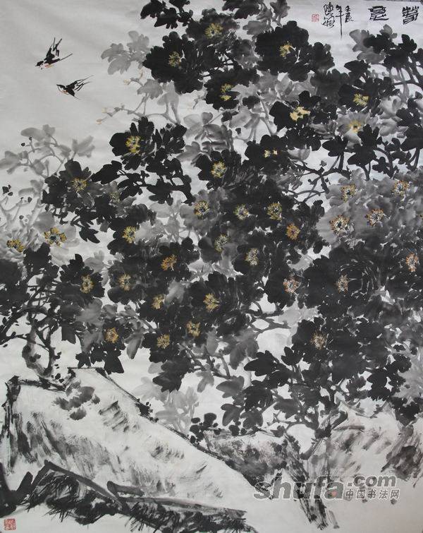 陈枫,原名陈志强,1976年生,上海美术学院毕业,河南南阳人。现为中国现代花鸟研究会创作室副主任,河南省政协书画院高级画师,大河画院秘书长等。 陈枫擅长中国花鸟画,以其独具个性风格的现代彩墨写意牡丹画步入画坛,成为近年来颇受学术界关注的实力派青年画家,多次在海内外举办个人画展及联展,在参加全国性重要书画大展赛中百余次获得大奖。其艺术成就被《中华书画英才》杂志、《当代书画家》杂志、《国画家》报、《中原书画报》、中央电视台等近百家媒体专题报道