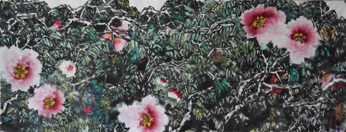 陈枫,原名陈志强,1976年生,上海美术学院毕业,河南南阳人。现为中国现代花鸟研究会创作室副主任,河南省政协书画院高级画师,大河画院秘书长等。 陈枫擅长中国花鸟画,以其独具个性风格的现代彩墨写意牡丹画步入画坛,成为近年来颇受学术界关注的实力派青年画家,多次在海内外举办个人画展及联展,在参加全国性重要书画大展赛中百余次获得大奖。其艺术成就被《中华书画英才》杂志、《当代书画家》杂志、《国画家》报、《中原书画报》、中央电视台等近百家媒体专题报道