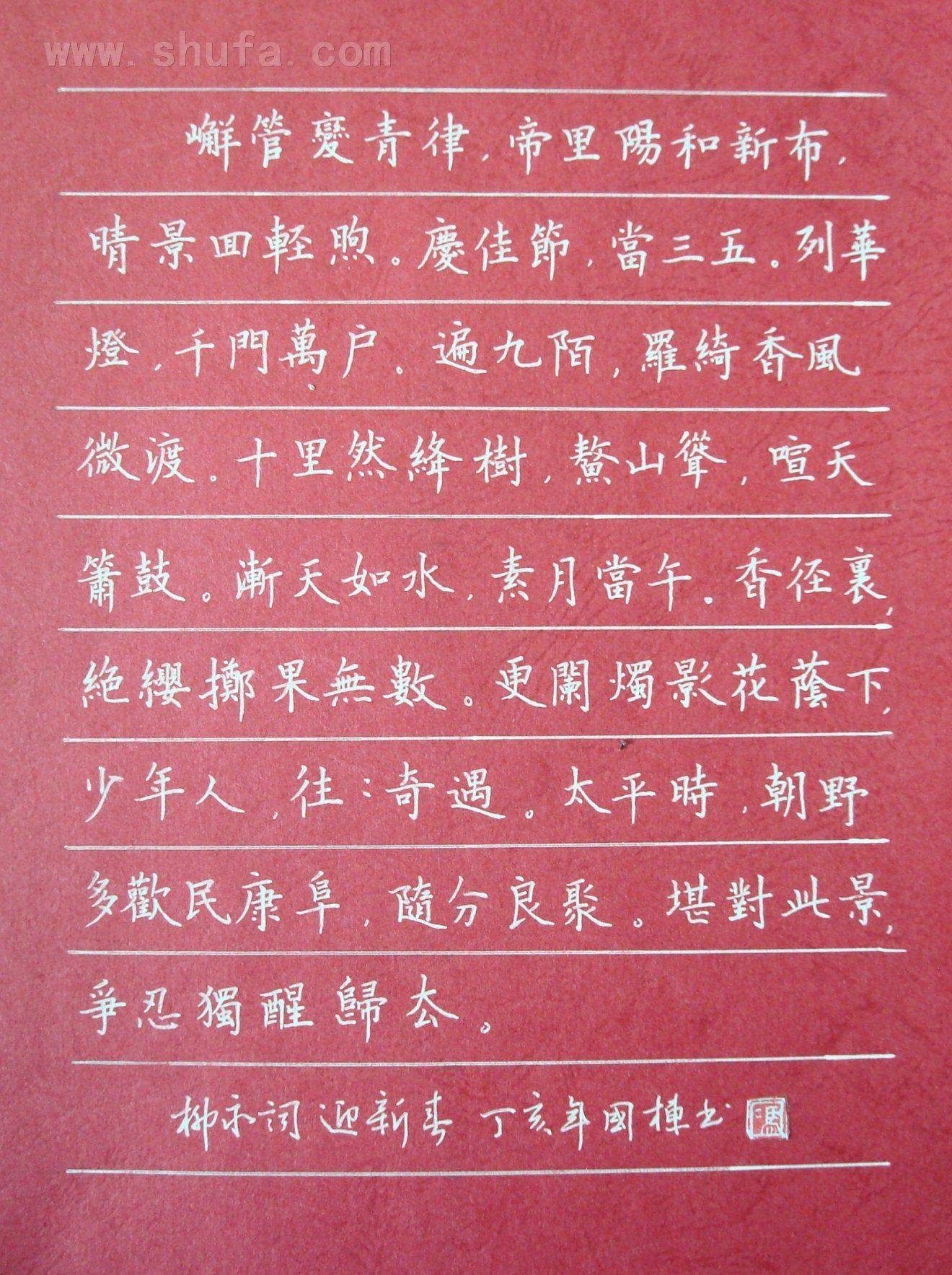作者简介 冯国栋 男 29岁,青龙人。中国硬笔书法家协会会员,河北省硬笔书法协会理事,河北省教育学会书法教育专业委员会理事。多次荣获全国书法比赛一等奖,作品散见于《中国钢笔书法》、《写字》、《书法报—硬笔书法》等专业报刊杂志。 通讯地址:河北省秦皇岛市青龙教育局 邮政编码: 066500 联系电话:13731791701 电子邮箱:lanting6666@163.com