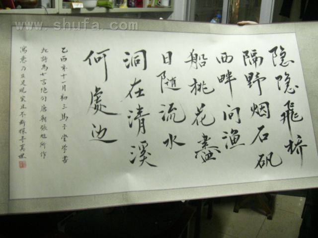 桃花溪 张旭 隐隐飞桥隔野烟,石矶西畔问渔船。 桃花尽日随流水,洞在清溪何处边? 诗词释译 【注解】: 1、飞桥:高桥。 2、石矶:河流中露出的石堆。 3、洞:指《桃花源记》中武陵渔人找到的洞口。 【韵译】: 隐隐看见一座长桥,被野烟隔断; 在石屿的西畔,借问打渔的小船。 桃花随着流水,终日地漂流不尽; 桃花源洞口,在清溪的哪段哪边?