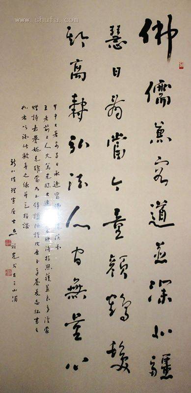 佛儒兼容道并深。北疆慧日看当今。 童颜鹤发期高寿。弘法人间无量心。 王前教授为一位集国学、书学、文学,以及佛学于一身之当代名家、教育家、书法家、诗人和令人尊敬长者。
