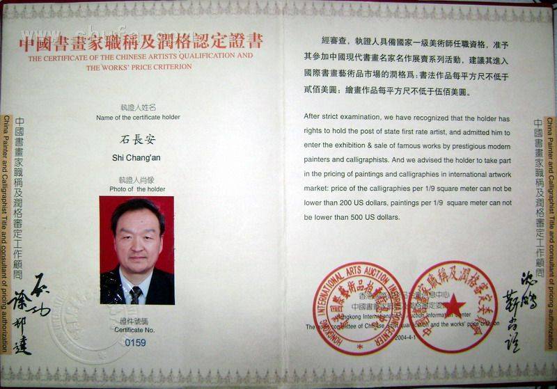 石长安润格证书