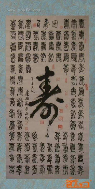作品中间是篆书大寿字,周围是一百个篆书小寿字制作展示。若喜欢请留言。