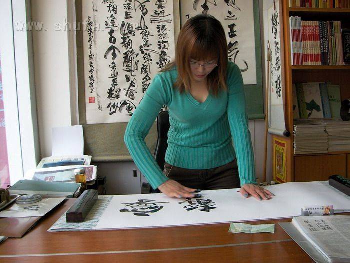 李爽,字:予人白,号:青荷居士,祖籍南阳。 她幼承家学,以指代笔、不畏艰难、拜师求教、临摹名家名帖,并将正楷、隶书、行书、草书、篆书、象形字、板桥体等古今书法融会贯通,综合运用。经过无数次的斟酌,探索和研究,秉承着对中国文化艺术的深刻感悟和理解,创作出了一幅幅别具匠心的艺术作品,形成了自己独特的风格。并能一步成对、三步成诗、指书指画、当场速成。