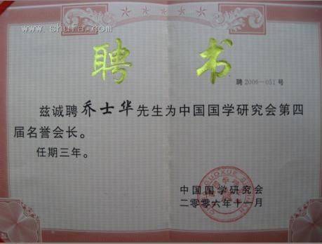 聘为中国国学研究会第四界名誉会长