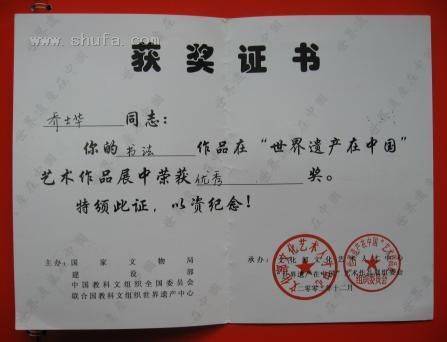 荣获世界遗产在中国优秀奖