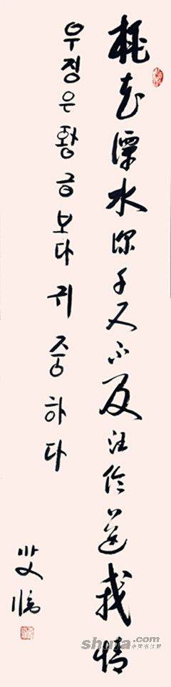 中韩双语书法: 桃花潭水深千尺,不及汪伦送我情。 李白诗