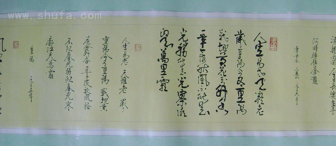 王永海,男,1953年出生于开封杞县。善写长卷,艺术界奇人。从小酷爱书法艺术,为了发扬祖国的书法艺术,孜孜不倦,辛勤耕耘,几十年如一日,自成一体。精通楷书,行书、行楷等等多种字体,深藏绝技,能左手书,右手书,左指书,右指书,口书,鼻书,脚书,等绝活。善写百米长卷,作品有:毛泽东全诗,(107首)金刚经,道德经,孙子兵法,唐诗,三字经,等等。受到郑州电视台,河南电视台,(都市频道,民生大参考),河南电视台第八频道,中央电视台(文化艺术体天地),中国新闻社,等多家国内新闻媒体的采访和报道。其作品在海内外赢得了良好的赞誉,被台湾,新加坡,马来西亚,日本千叶县,北京故宫博物院,齐白石纪念馆,美国联邦文化教育基金会,海峡两岸书画名家作品展组委会珍藏。作品通过了“中国艺术鉴定委员会”的鉴定。