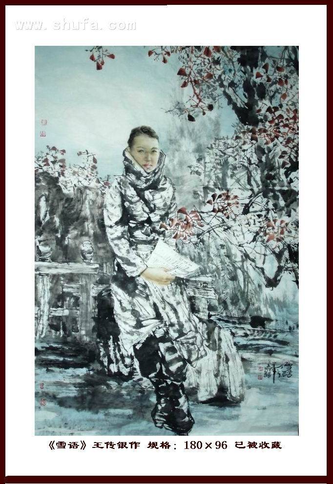 王传银:64年1月出生,86年大学毕业。山东画院高级画师、山东鲍山画院(官方画院)常务副院长兼秘书长,专职画家。作品和事迹先后被中央电视台、济南电视台、山东电视齐鲁台、山东电视生活台、山东电视综艺台作了专题采访。《人民日报》、《美术》、《国画家》、《中国书画报》、《美术报》、《画刊》、《中国文化报》等各大报刊也相继进行了图文介绍或专访。出版有《王传银国画作品精选》《王传银国画作品欣赏》和《水墨人物—王传银》。作品先后被人民大会堂,中央电视台,美术馆、南非总统曼德拉、泰国总理班汉、乔石、姜春云、薄一波等国家领导人和社会各界人士收藏,全国几十家艺术网站、画廊代理其作品。