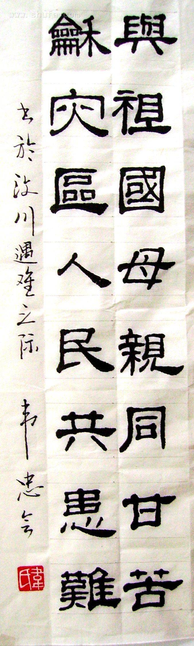 与祖国母亲同甘苦, 和灾区人民共患难。