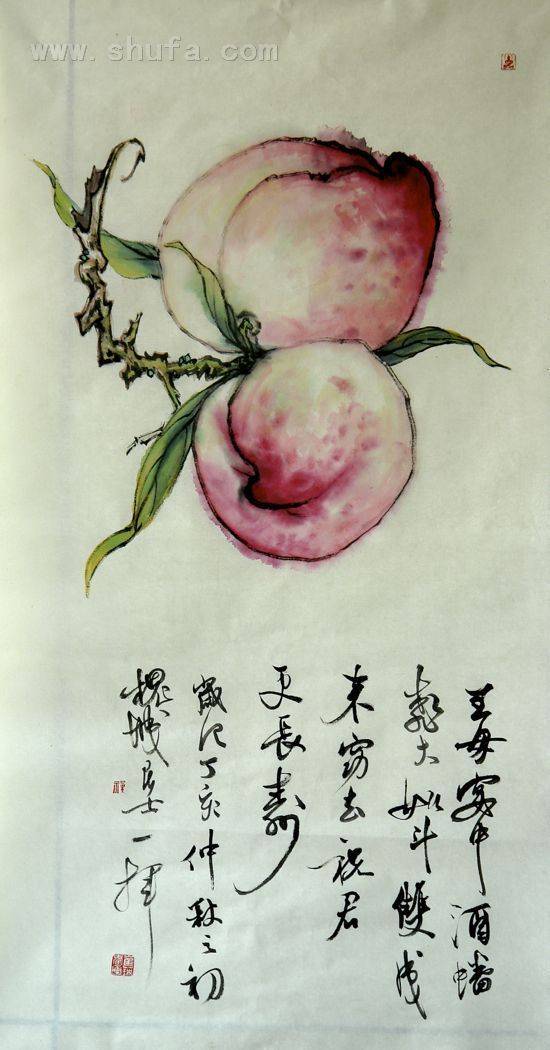 千年桃实大如斗,仙人摘之以酿酒,一食可得无量寿,朱颜长如十八九。