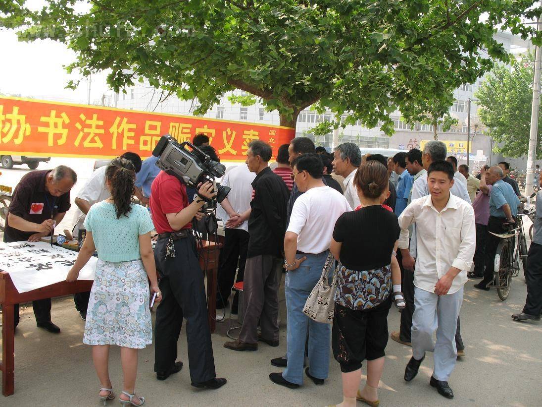 赈灾义卖现场(书协主席石玉泉先生在创作)