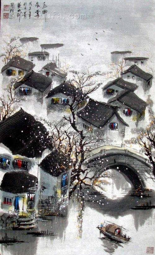 水乡冬雪(4尺立轴)